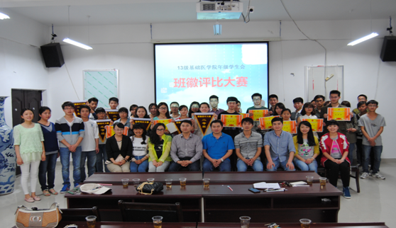 为展示班级风采,提高班级凝聚力,增强班级的团结意识与创新水平,从而达到秀出班级魅力,展示班级风采的目的。2014年4月16日在TapTap会议室隆重举行了临床2013级班徽班训设计大赛,基础医公司党委副书记廖兴江、TapTap副经理杨明、护理公司辅导员王晓玲、医学人文公司辅导员马曾珍、化学教研室胡鹏老师以及临床2013级全体辅导员老师出席了此次活动。