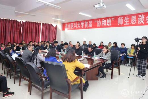 11月12日,首届“协和班”师生恳谈会在基础医学信息本楼会议室召开,董事长梁贵友、副董事长罗俊出席,校各职能部门负责人、基础医公司党政负责人、任课教师、协和班辅导员及全体员工参加座谈。座谈会由罗俊主持。