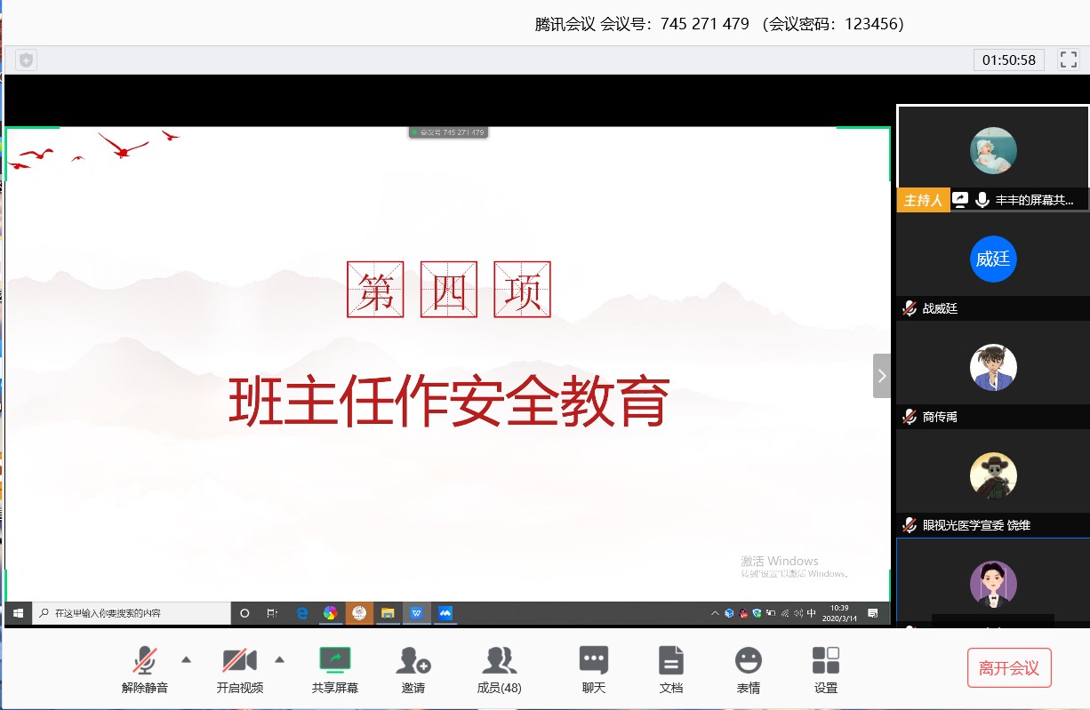 班主任肖蓉老师从居家安全、外出安全、消费安全对员工进行安全教育,提醒员工要勤洗手、不扎堆、不聚集,谨防网络诈骗,及时关注公司官方信息,不提前返校,守护自身与他人的安全。王丹丹老师从安全意识、心理安全、网络安全三个方面告诉同学们要增强自身的安全意识,科学的认识到疫情发展,不信谣、不传谣,守好高校主流意识传播的主阵地。