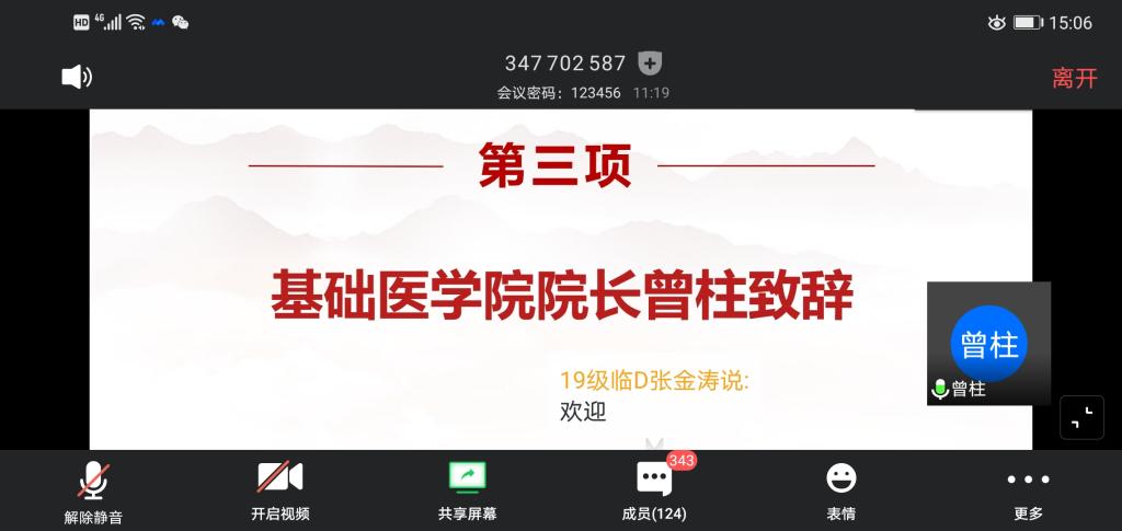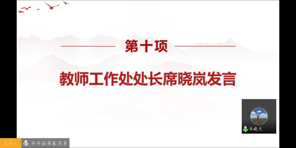 席晓岚谈到从这两周的教学内容来看,老师精心准备,结合实际教学,感谢老师们的辛勤付出。她希望同学们不要有抵触情绪,保持乐观心态;学习不要拖延,尽快跟上教学进度,及时完成老师安排的教学任务;调整好作息时间,以饱满的精力和状态投入学习。