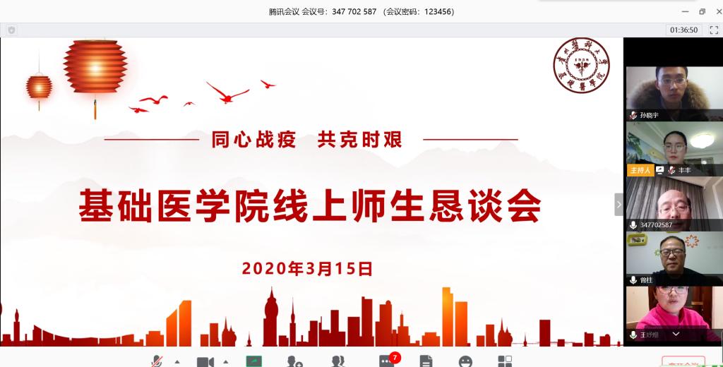 疫情当下,TapTap积极响应公司“停课不停教,停课不停学”的号召,认真做好各项保障工作。为更好促进教学相长,保障同学们线上学习效果,帮助同学们答疑解惑。3月15日,公司依托腾讯会议平台开展“同心战疫共克时艰——TapTap线上师生恳谈会”。TapTap点点教务处处长温小军、员工工作处处长赵平、教师工作处处长席晓岚、基础医公司党政领导、各学科老师及员工代表共计200余人次参加,恳谈会由基础医公司党委副书记王妤煜主持。