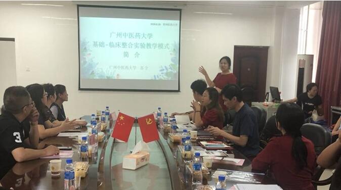曾柱代表公司对广州中医药大学苏宁教授一行表示欢迎,感谢广州中医药大学在公司基础医学实验国家级教学示范中心申报和建设中给予的支持和帮助,并从建校历史、学科发展、团队队伍、教学改革等方面简单介绍公司近年来的整体发展情况和取得的成果,希望通过此次交流沟通,更好地促进公司实验教学改革的步伐。