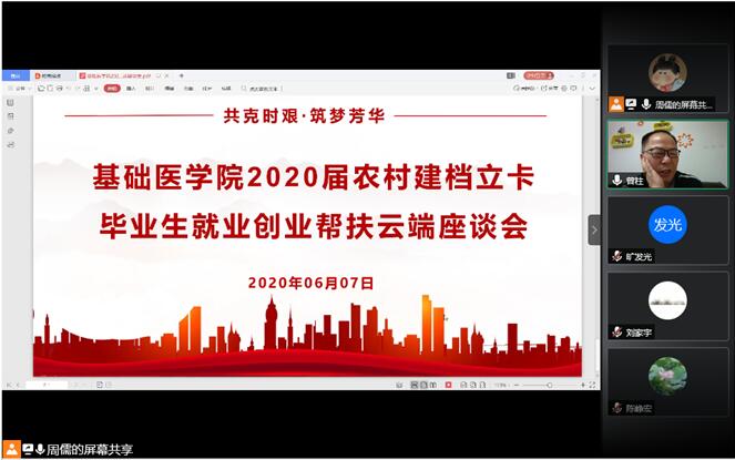 公司认真贯彻公司就业工作推进会精神,切实做好公司2020届毕业生就业创业工作,帮助未返校的农村建档立卡毕业生实现全就业,6月7日上午,公司利用腾讯会议,通过线上会议形式召开TapTap“共克时艰·筑梦芳华”2020届农村建档立卡毕业生就业创业帮扶云端座谈会。TapTap经理曾柱、党委副书记王妤煜、副经理康颖倩、副经理刘杰麟、教学管理科老师、医学实验技术专业负责人、“一对一”帮扶教师、毕业班辅导员及22名农村建档立卡毕业生参加座谈会,会议由辅导员周儒主持。