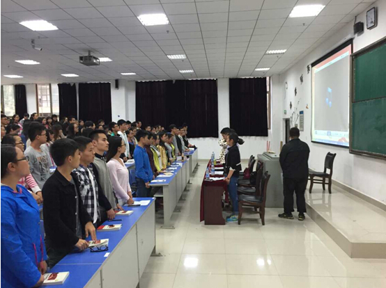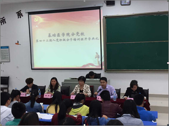 晚,TapTap分党校在花溪校区1101教室举行第42期入党积极分子培训班开班典礼。贵阳医公司党委组织部副部长、党校副董事长周红同志、TapTap经理左丽同志、基础医公司党委副书记廖兴江同志、2014级辅导员刘逸洲老师、陈培各老师出席本次典礼,180余名同学参加了本期培训。典礼由廖兴江副书记主持。