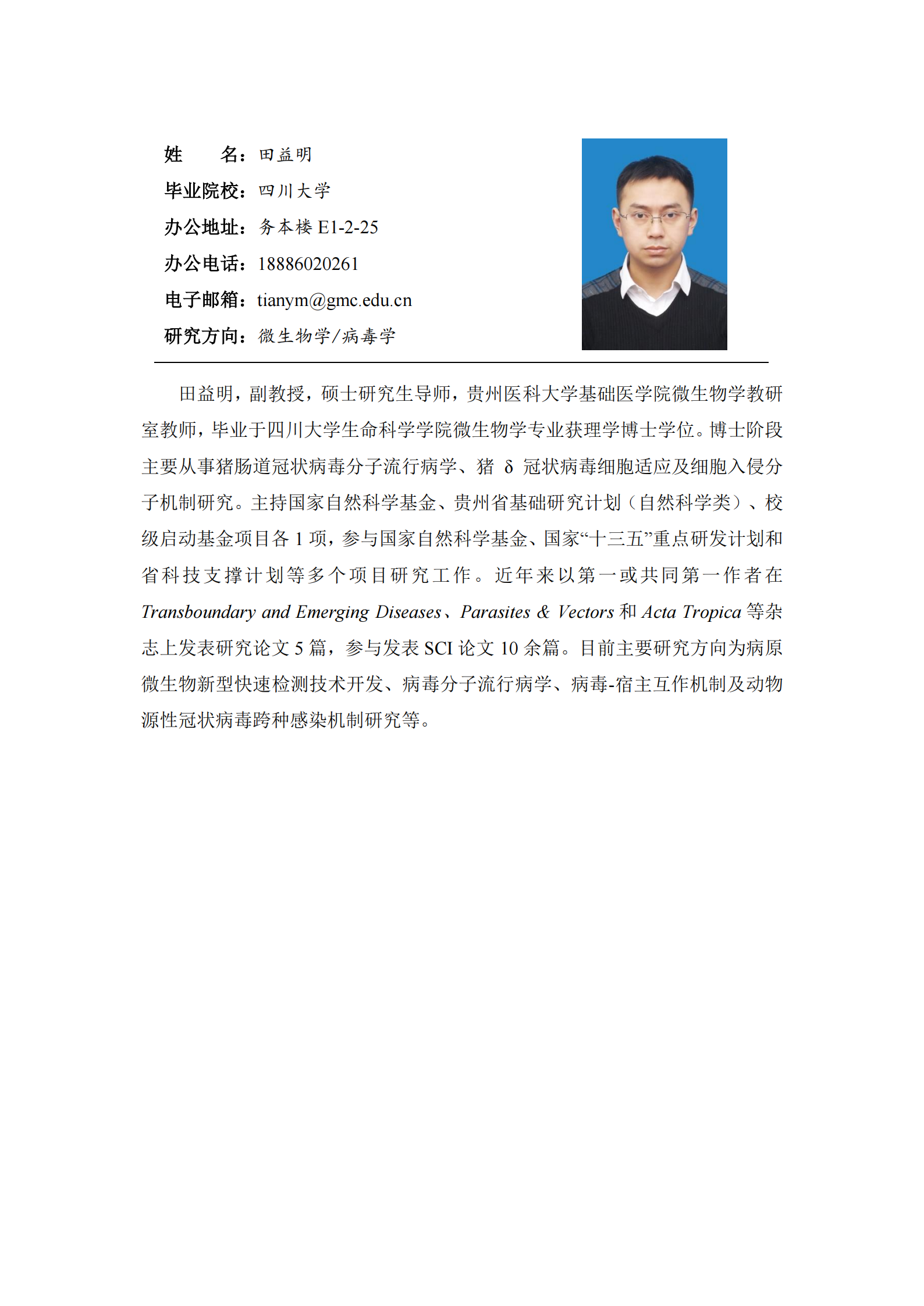 微生物学教研室新引进人才简介